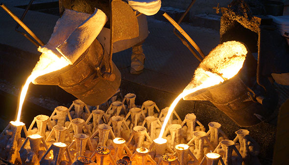 答:A.取模——取模自動頂模減少變形,冷卻時用胎具固定,組樹時檢具檢測; B.制殼——工藝上與澆注系統形成框架,必要的設計輔具固定; C.焙燒——焙燒時設計放置輔具; D.熱處理——裝箱方式和數量固化統一,減少加熱過程中變形; E.拋丸——掛拋; F.校正——對沒有防止住變形的鑄件,事后機械校正保證。